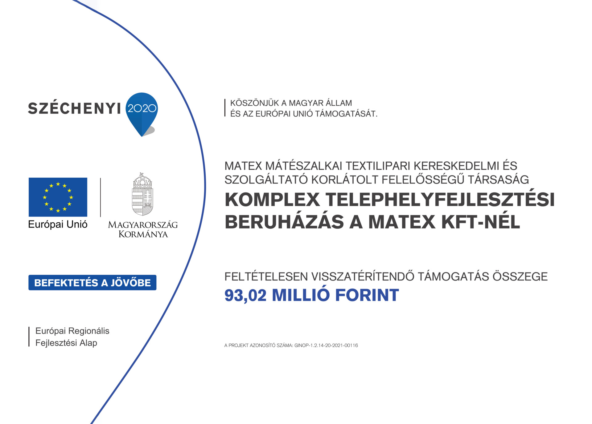 A projekt címe: Komplex telephelyfejlesztési beruházás a Matex Kft-nél